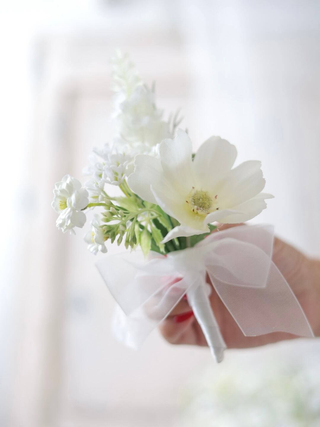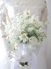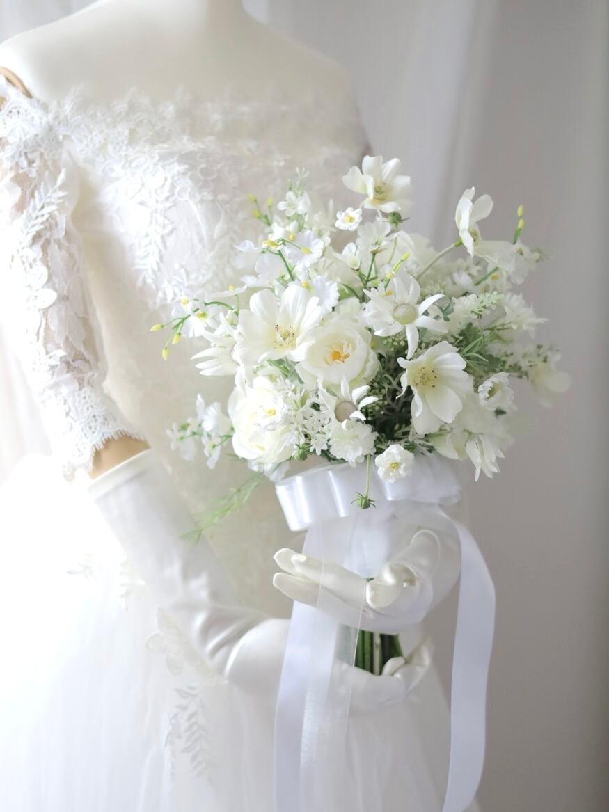 ピュアコスモスブーケ ウェディングブーケ 白ブーケ ブートニアセット