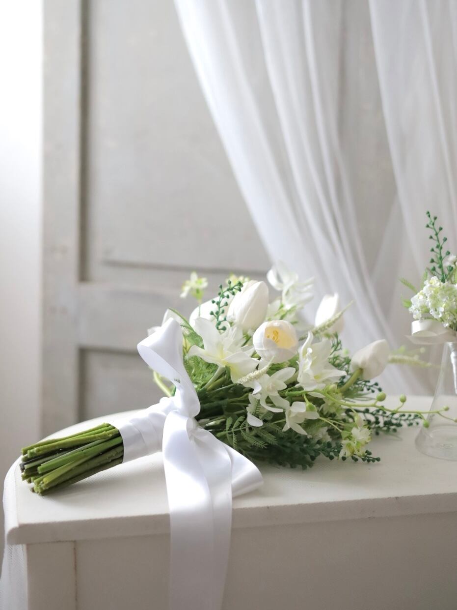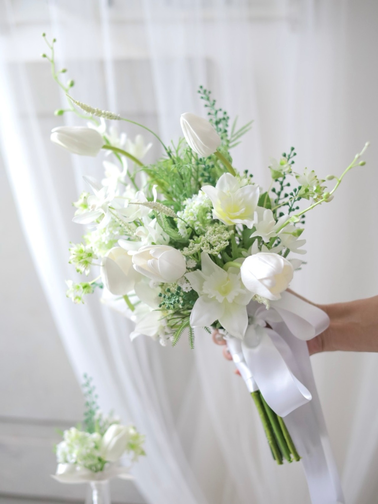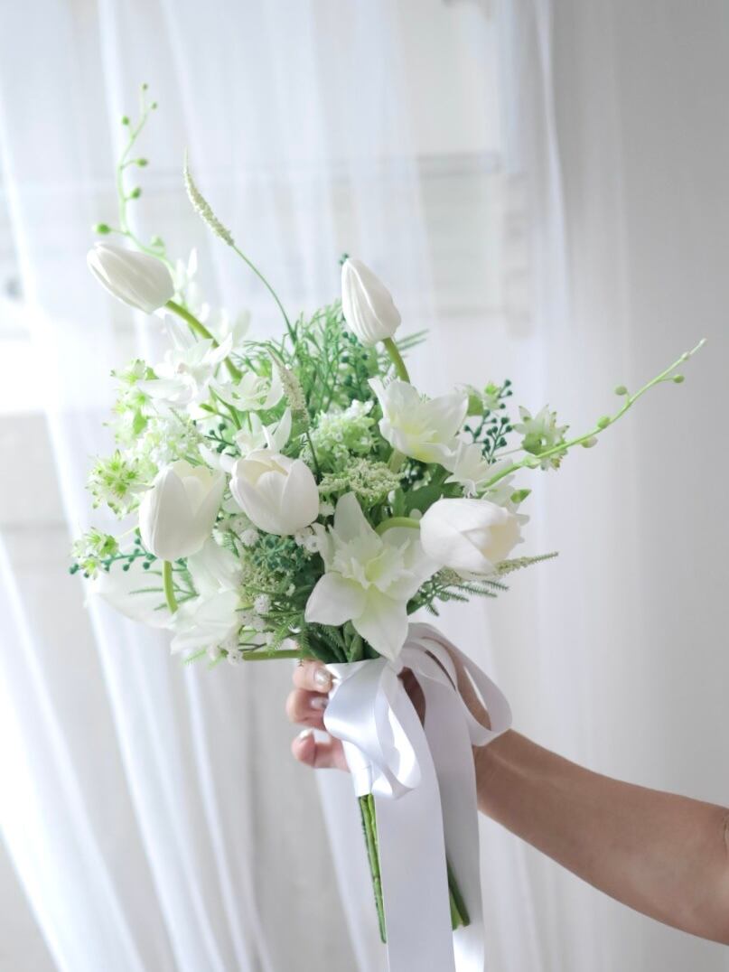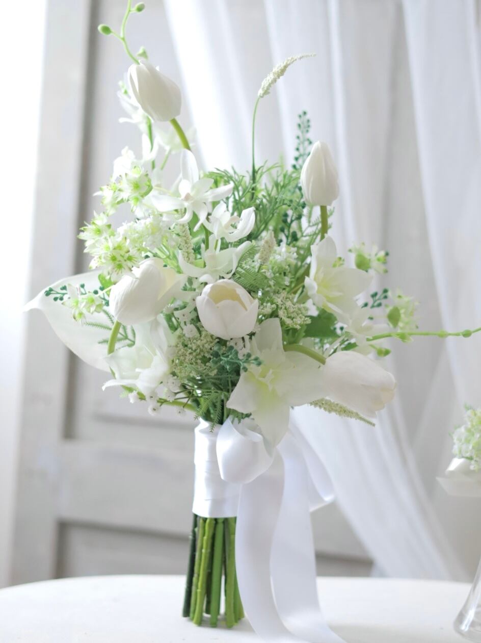 #白ブーケ#韓国ブーケ#チューリップ#ウェディングブーケ #前撮り #造花ブーケ #おすすめブーケ