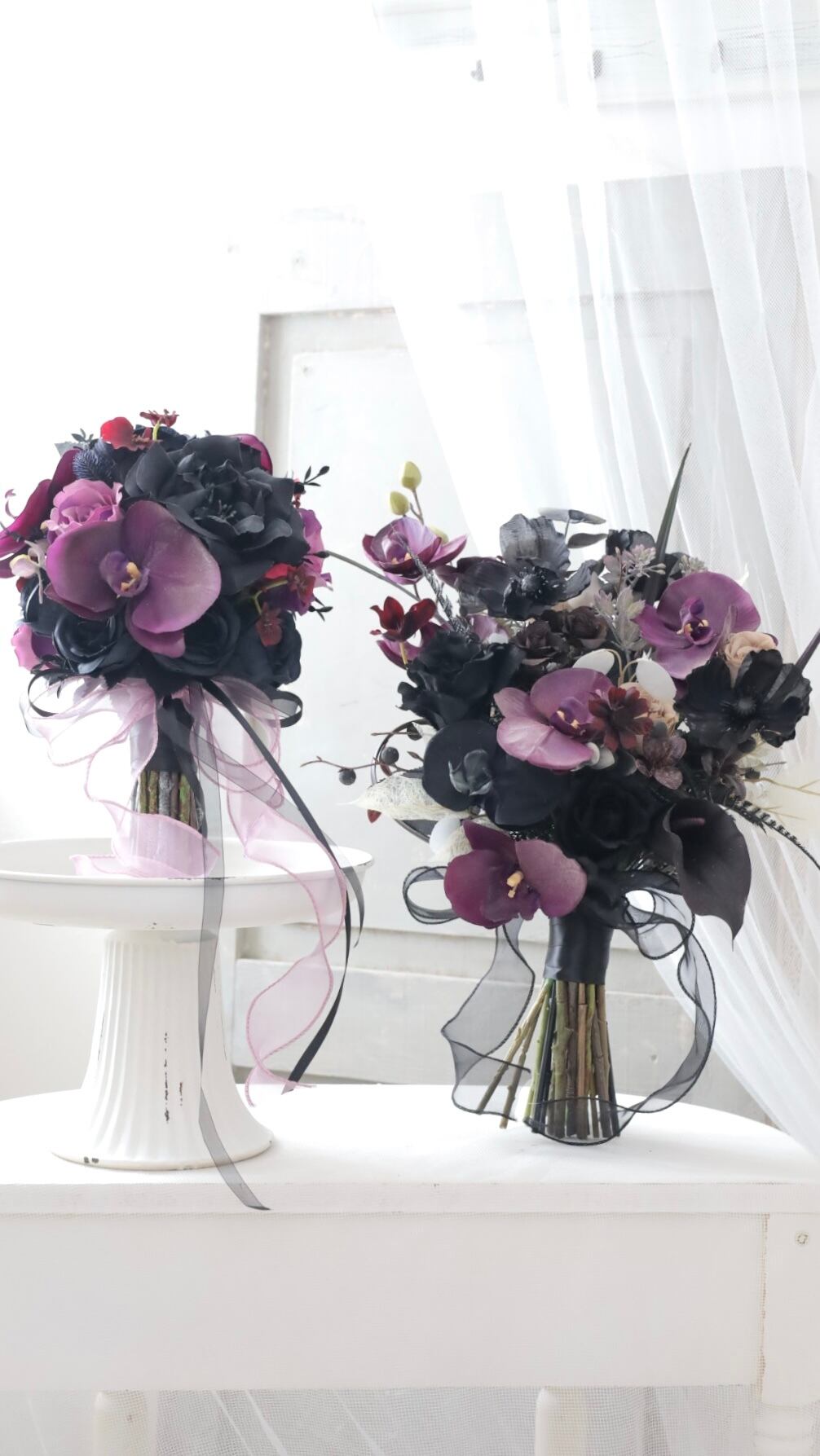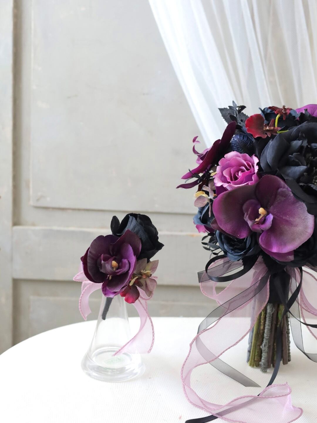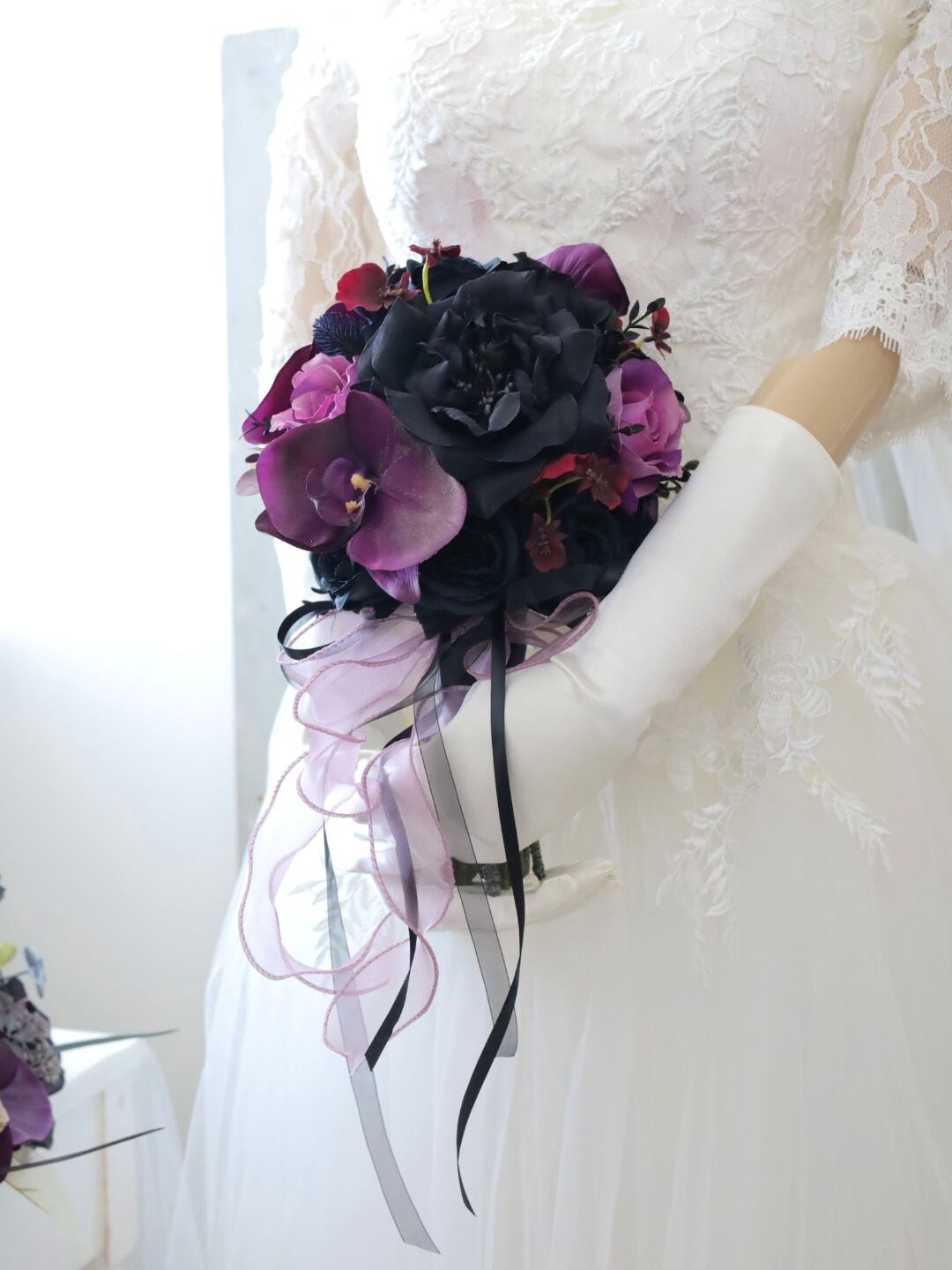 #ウェディングブーケ #ブラックピオニー #ダークトーン #シック #ナイトウェディング #アーティフィシャルフラワー #ブーケコーデ
