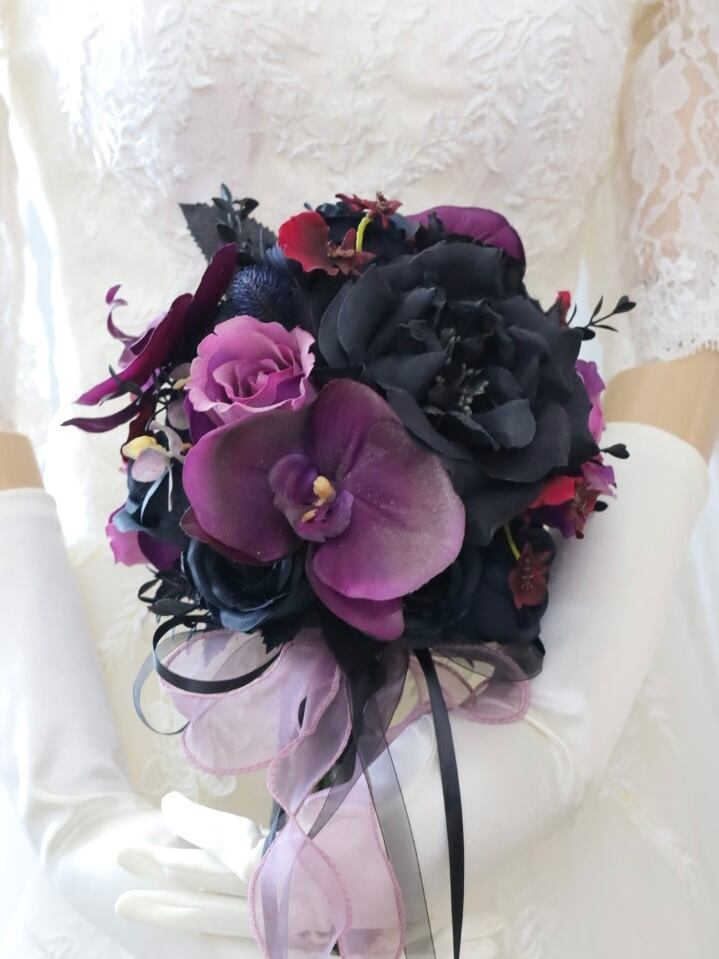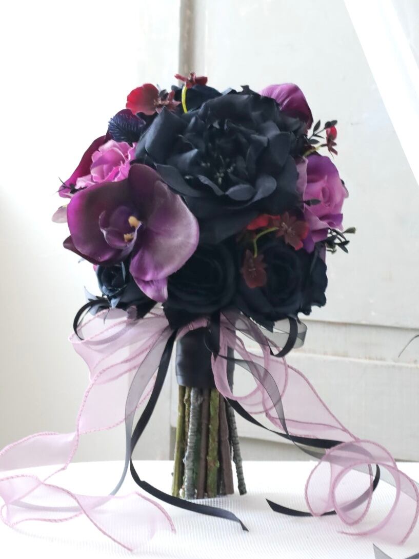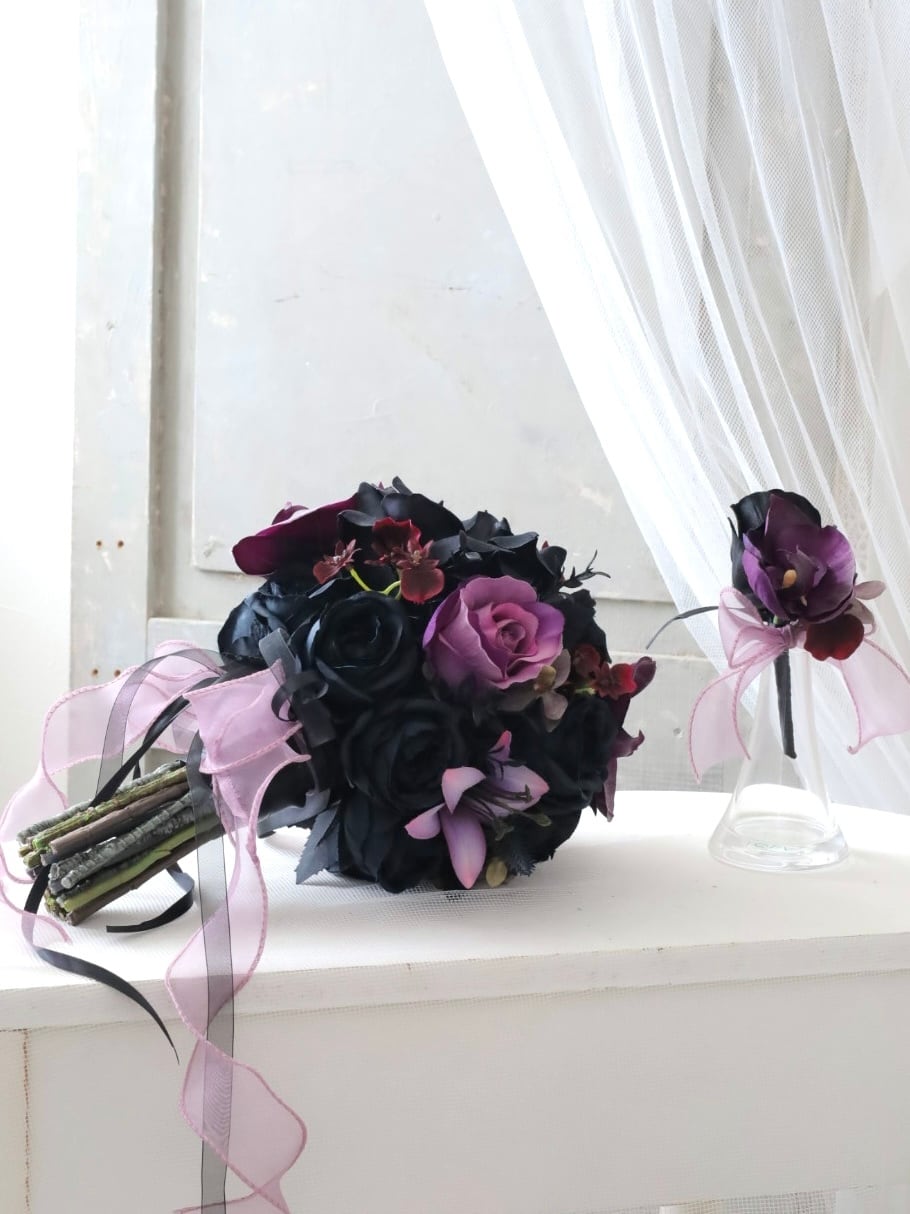 #ウェディングブーケ #ブラックピオニー #ダークトーン #シック #ナイトウェディング #アーティフィシャルフラワー #ブーケコーデ