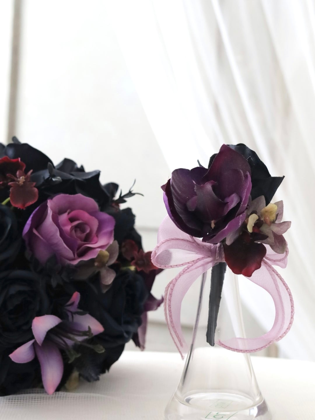 ブラックピオニーブーケ ブートニアセット ブラックブーケ ウェディングブーケ