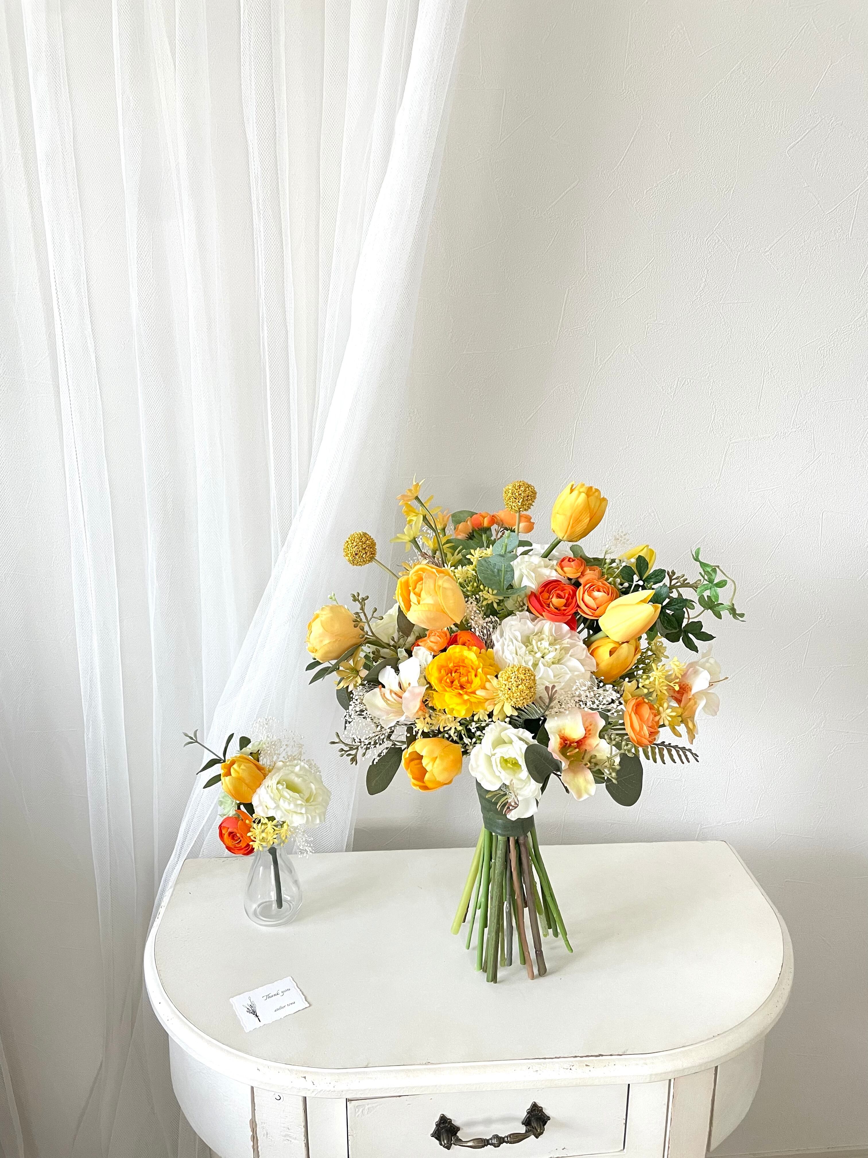 ビタミンカラークラッチブーケ ブートニア2点セット