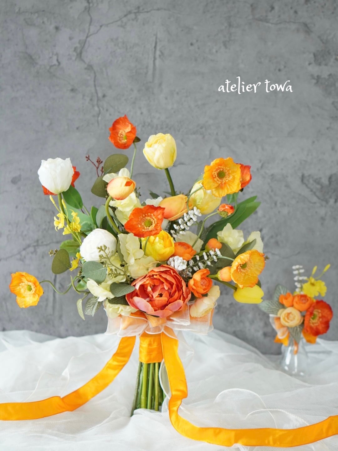 タンジュリンオレンジブーケ ブートニアセット ウェディングブーケ