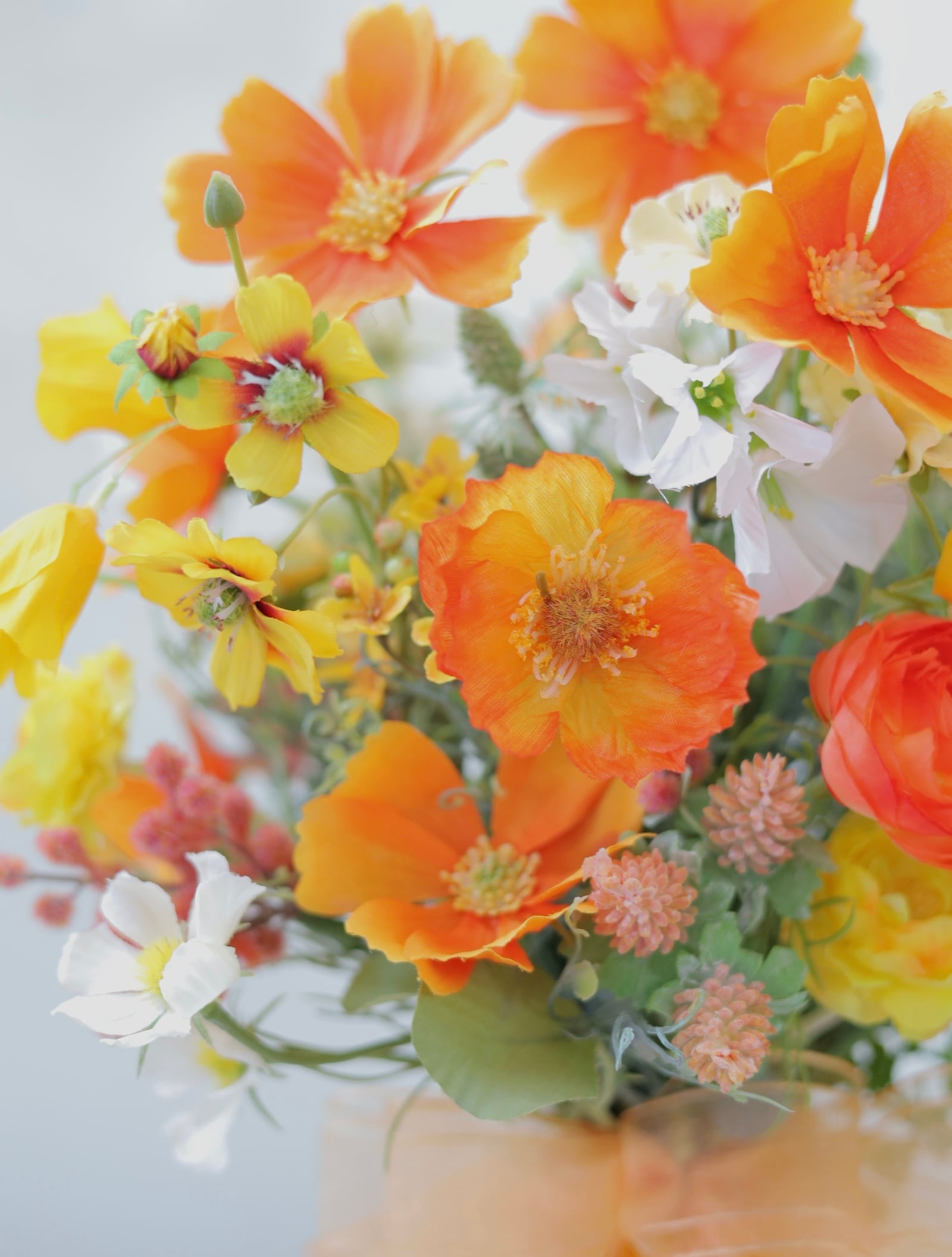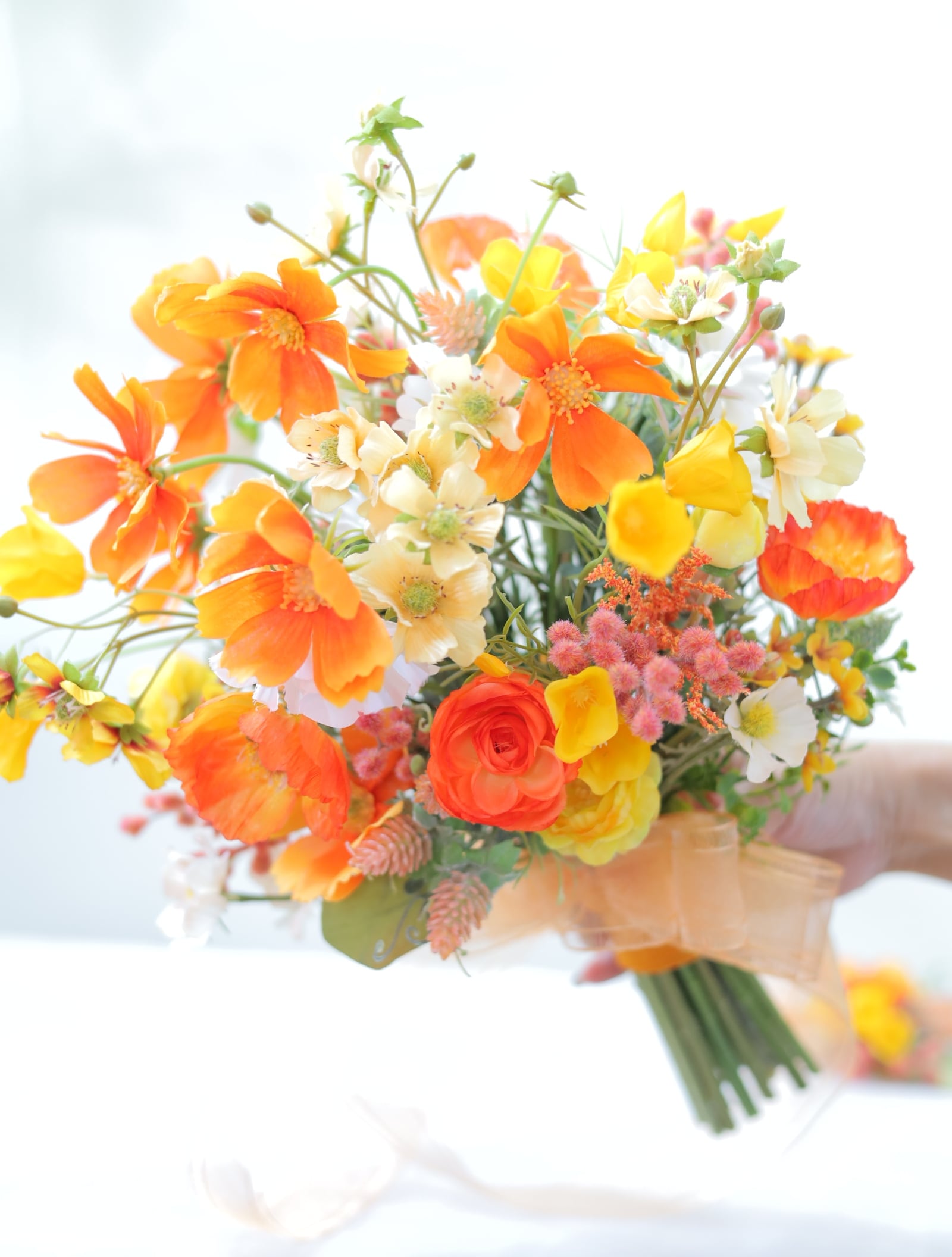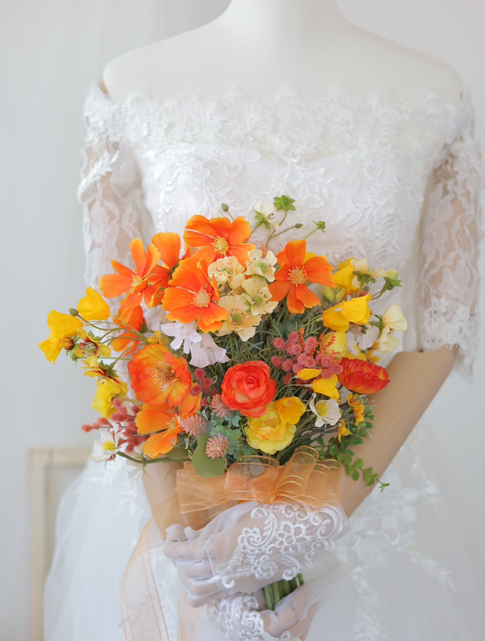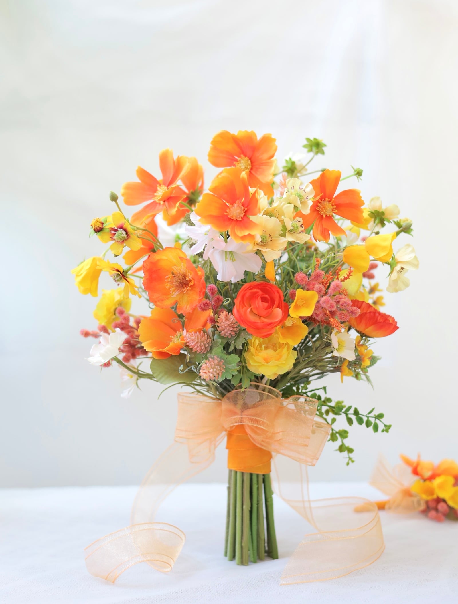 オレンジビタミン コスモスブーケ ウェディングブーケ ブートニアセット